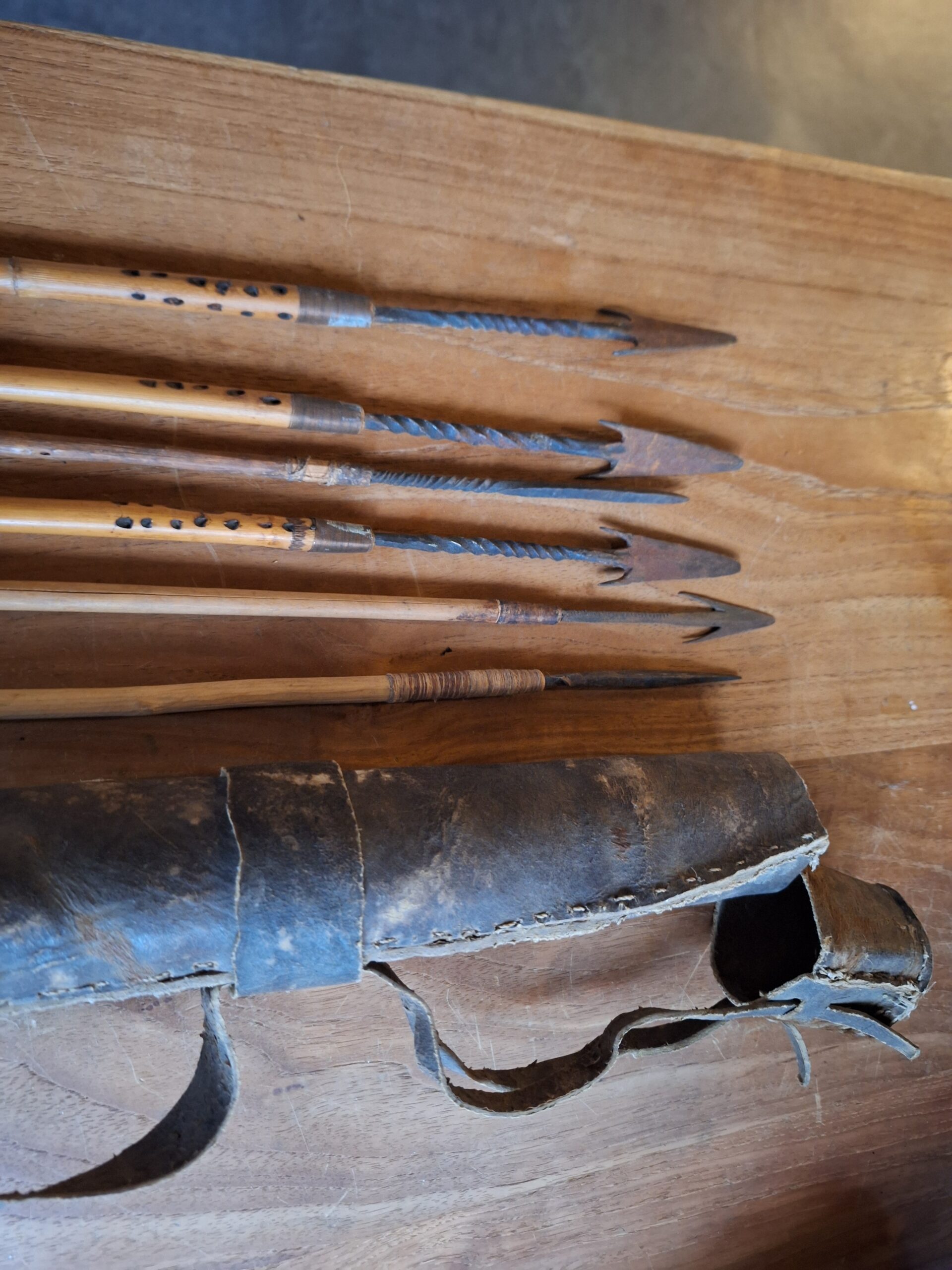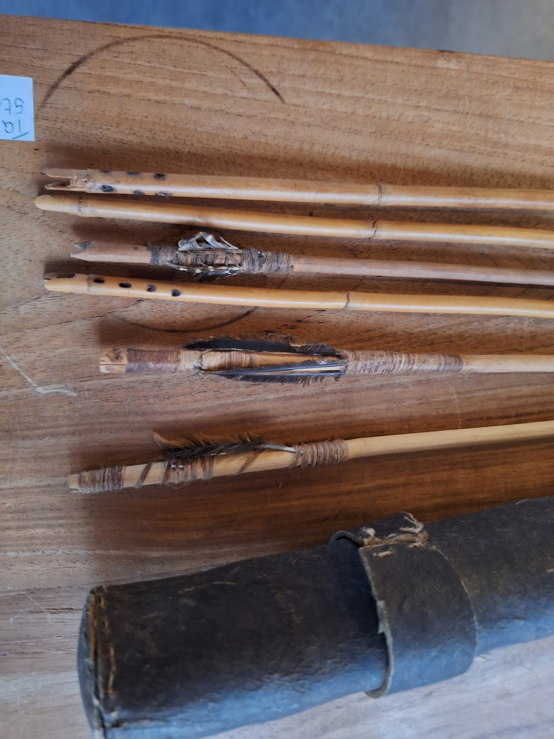 Antieke pijlkoker met 6 originele gevederde pijlen, vermoedelijk Afrikaans. De set is in goede staat. Bieden vanaf € 150,-, het hoogste bod geldt, hij staat ook op Marktplaats