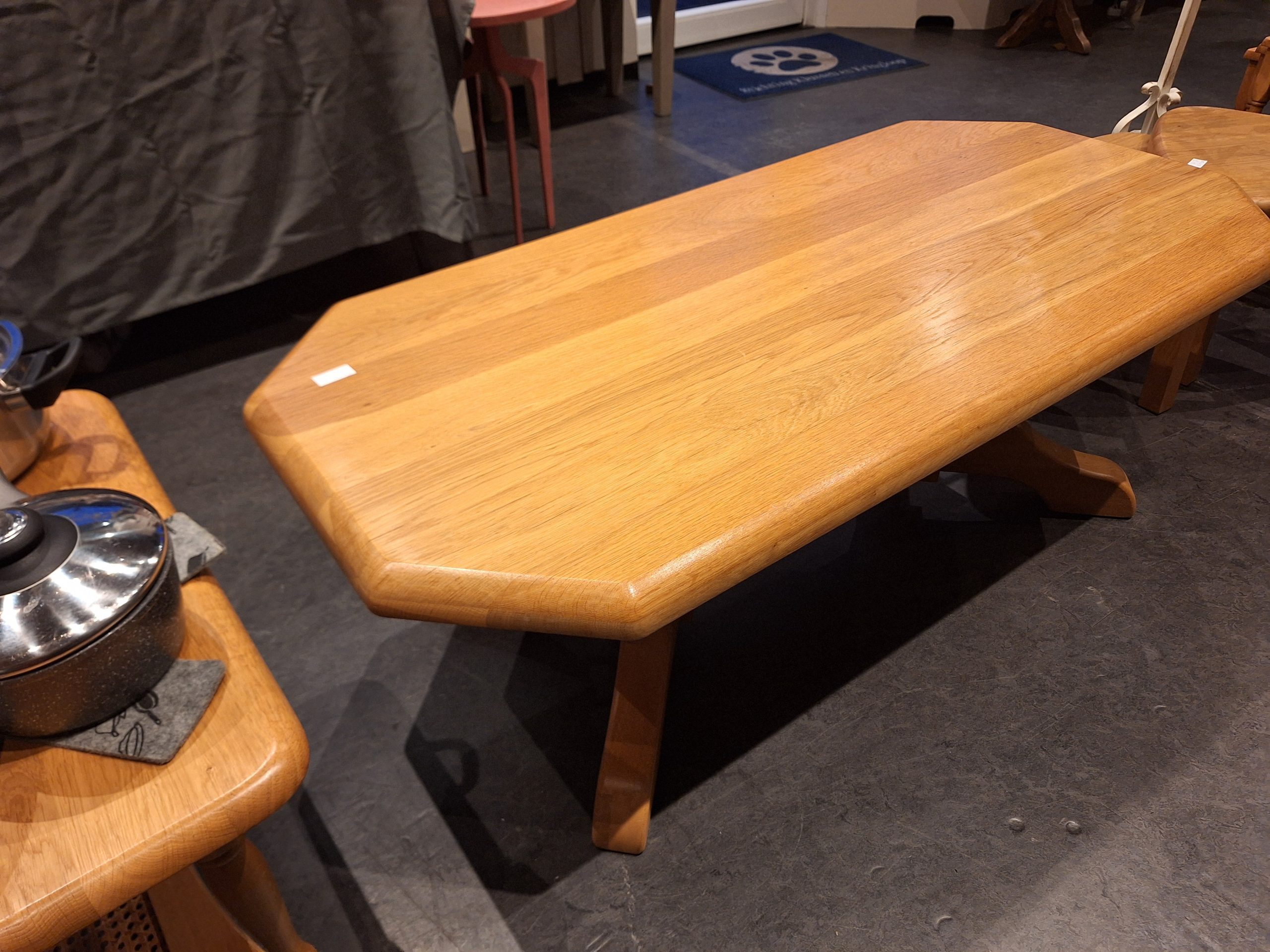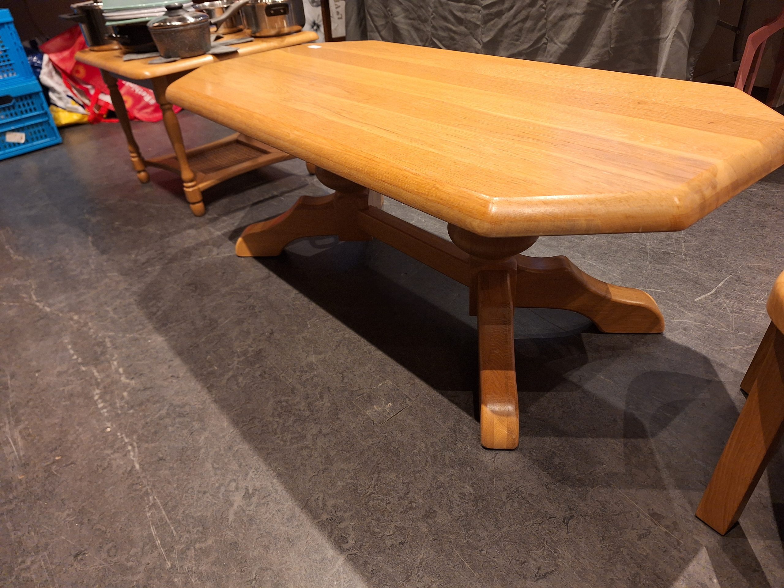 Massieve salontafel in goede staat. Hij is mooi van lengte, maar niet te breed, zodat hij niet te veel ruimte inneemt. Afmetingen 47 h 128 l 63 b. Prijs € 25,-