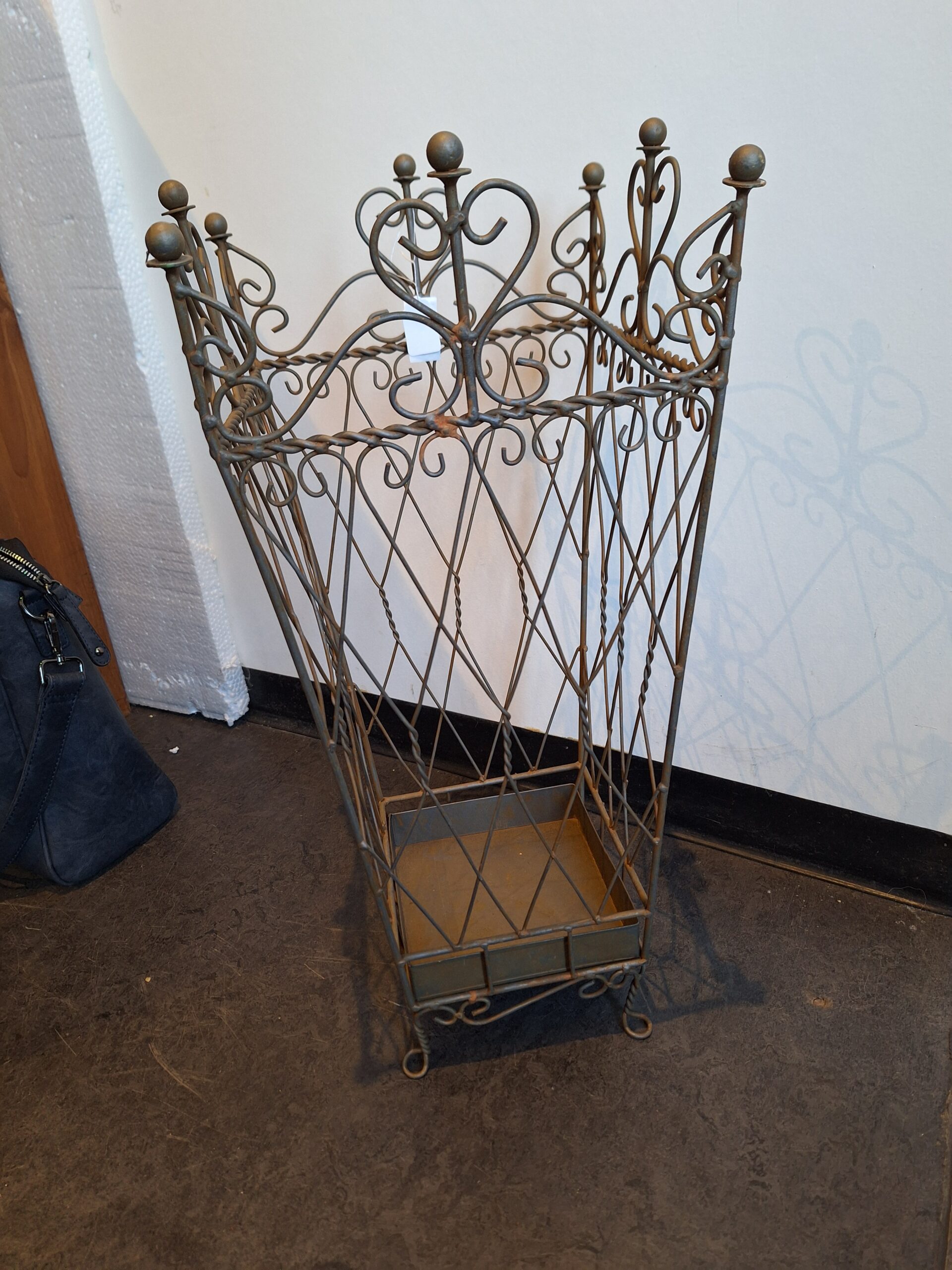 Sierlijke paraplubak van metaal. Hij is nieuw uit de doos. Afmetingen 55 h 26 b 26 b. Prijs € 30,-